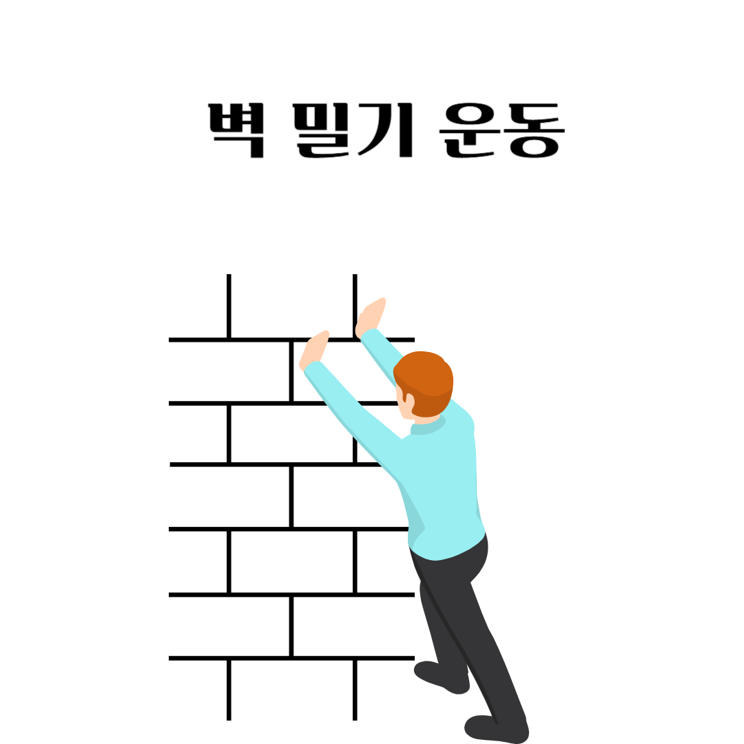 - 벽 앞에 서서 손바닥으로 밀며 견갑골을 앞으로 내밀고 다시 붙인다.